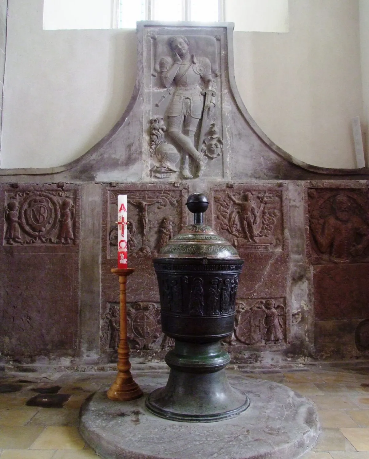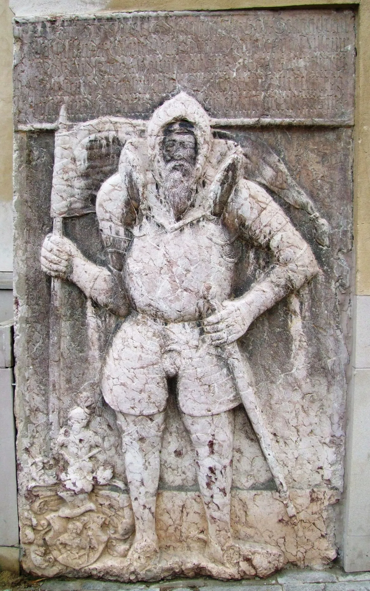 „Na toto miesto Melchior Schmitz privalil kameň z mramoru. Tu som ho postavil pre svoju Katarínu a Dorotu. Jedna aj druhá mi boli rozumnými manželkami a pre mnohé zásluhy mi boli drahé. Teraz sa však už radujú v nebi. A čoskoro aj ja ich budem pod tvojím vedením, drahý Kriste, nasledovať a radovať sa tam s nimi. Veď pokiaľ ty žiješ, aj my žijeme, lebo sme boli posvätnými údmi tvojho tela. Nikto, ani krutý démon, ani svet naokolo či smrť nás nevyrve z tvojich silných rúk.“