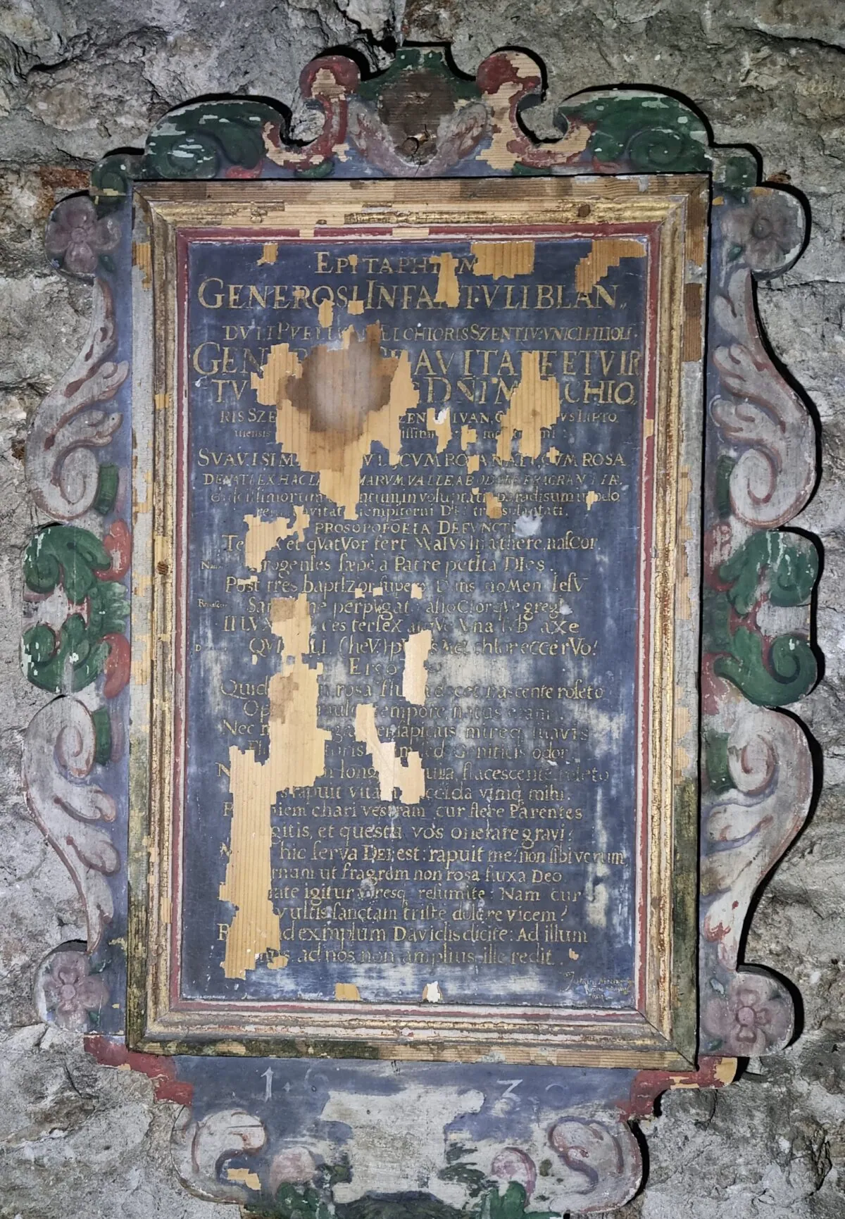 Ojedinelá je rozsiahla báseň, ktorá sa zachovala v Liptovskom Jáne. Ide o drevený maľovaný epitaf z roku 1630, ktorý dal pre svojho syna Melchiora Szentivániho vyhotoviť jeho otec. Poznáme aj autora básne, ktorým bol český vzdelanec Ján Mechanopaeus z Kutnej Hory. Ten ušiel na naše územie pred náboženským prenasledovaním a v Liptovskom Jáne stál na čele tunajšej školy. Báseň (tzv. prosopopeja), ktorú vytvoril, je zvláštna tým, že sa v nej mŕtvy chlapček v prvej osobe prihovára svojim rodičom a utešuje ich, aby za ním nežialili. Ústredným motívom je prirovnanie chlapčeka k ruži a jej vôni. Jeho snaha povzbudiť svojich rodičov vrcholí posledným dvojverším, kde im dáva za príklad kráľa Dávida, ktorý taktiež prišiel o syna:
