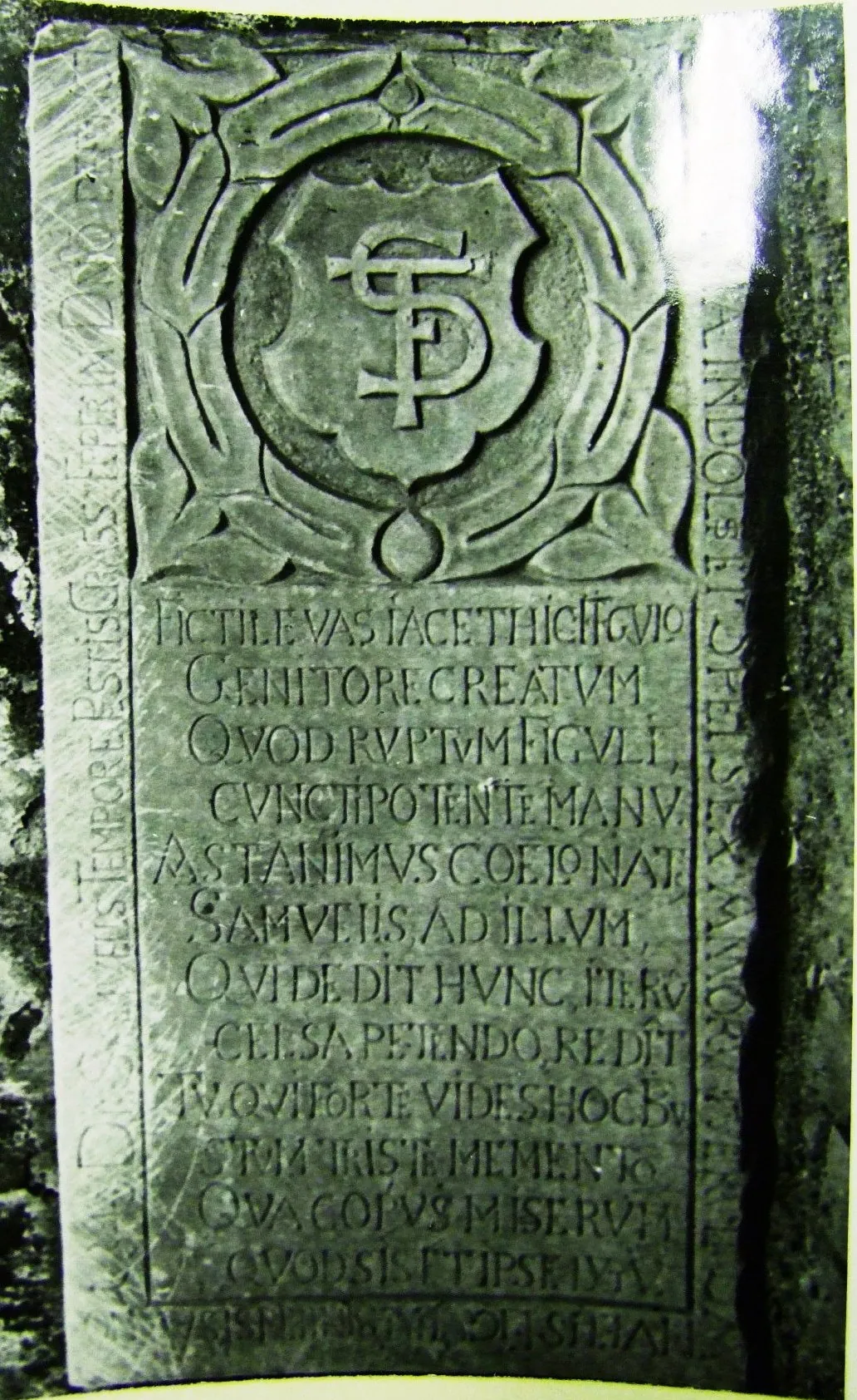 „Tu leží hrnčiarska váza vytvorená a zničená všemocnou rukou Hrnčiara – Stvoriteľa. Ale duša je v nebi zrodená. Samuel ju znovu vracia tomu, ktorý mu ju dal. Ty, ktorý náhodou vidíš tento hrob, pamätaj, že si len biedne telo a takisto umrieš.“