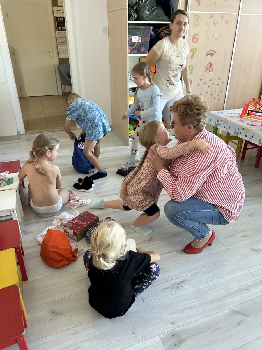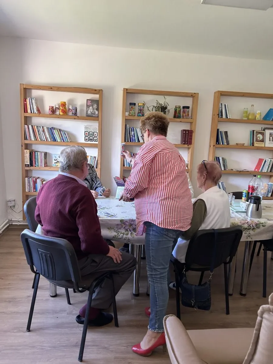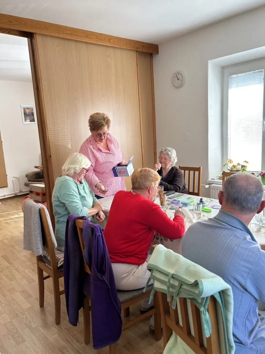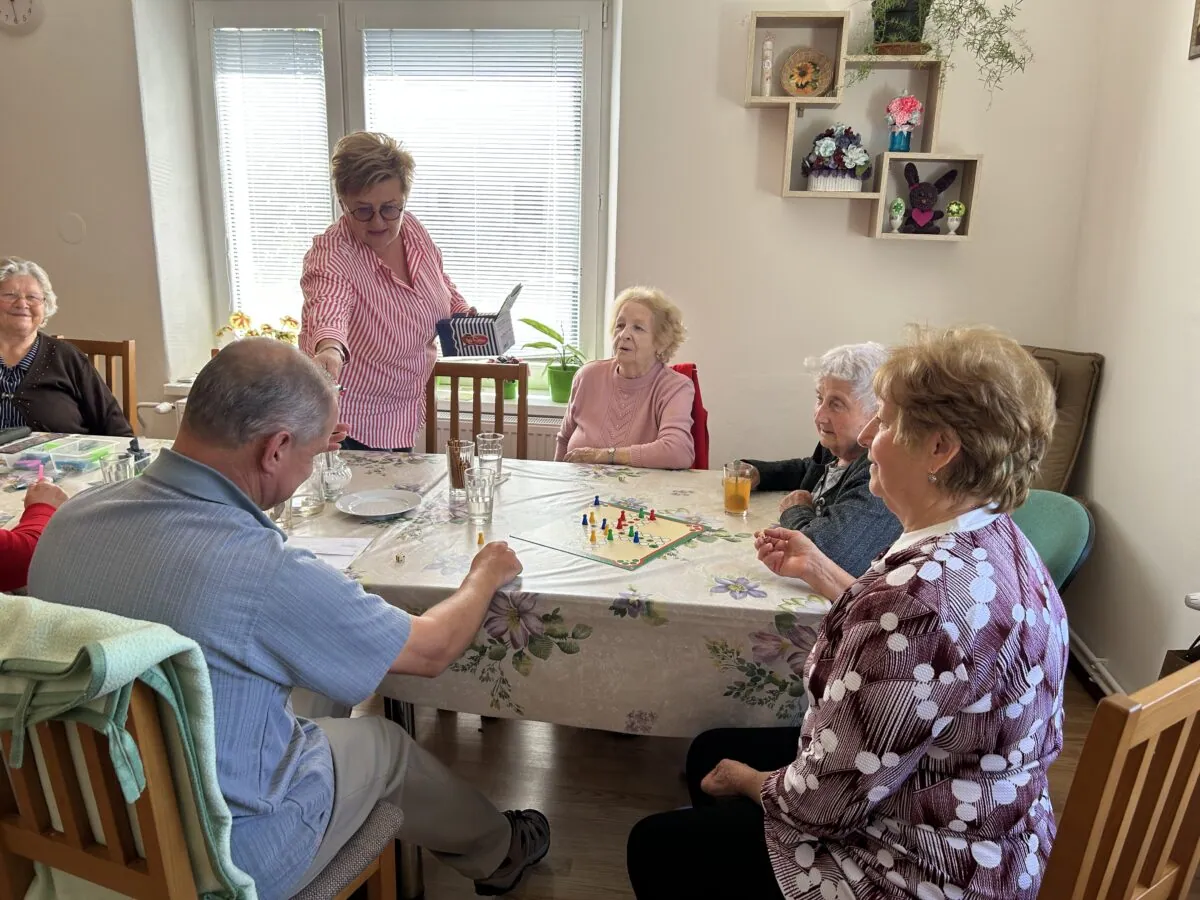 Opäť sadáme do auta, pani starostka súčasne rozpráva, telefonuje, cúva i máva škôlkarom na dvore, no to všetko bez stresu a v pohode. V dennom stacionári je plno, ošetrovateľky z neziskovej organizácie Pokojná jeseň hrajú s klientmi spoločenské hry, karty, maľujú maľovanky na precvičovanie motoriky. Pani starostka všetkých zdraví, rozdá čokolády, sľúbi, že im objedná pedikérku a kaderníčku, a prisľúbi sa aj na ich budúcotýždňovú opekačku, aj keď jej to časovo nevychádza. Ale ľudí odmietnuť nedokáže. Vidno na nej, že je všade doma a že ju tu majú radi.